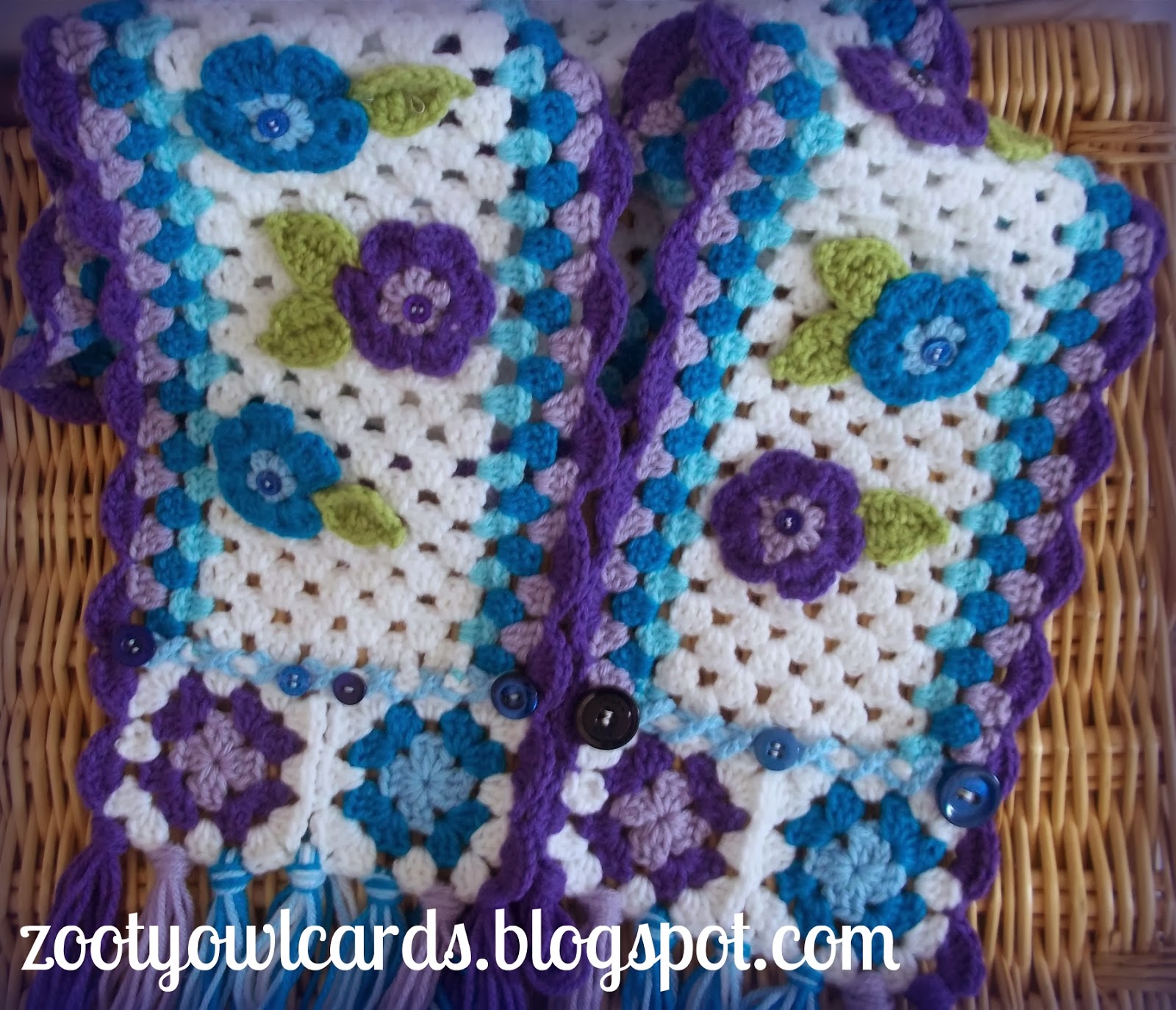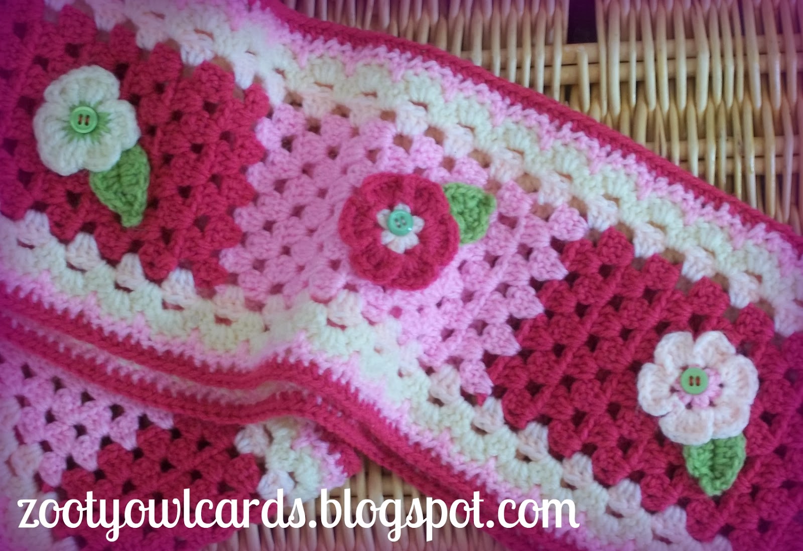I love adding flowers to just about everything - so I set about turning my granny strips into lovely flower scarves:
