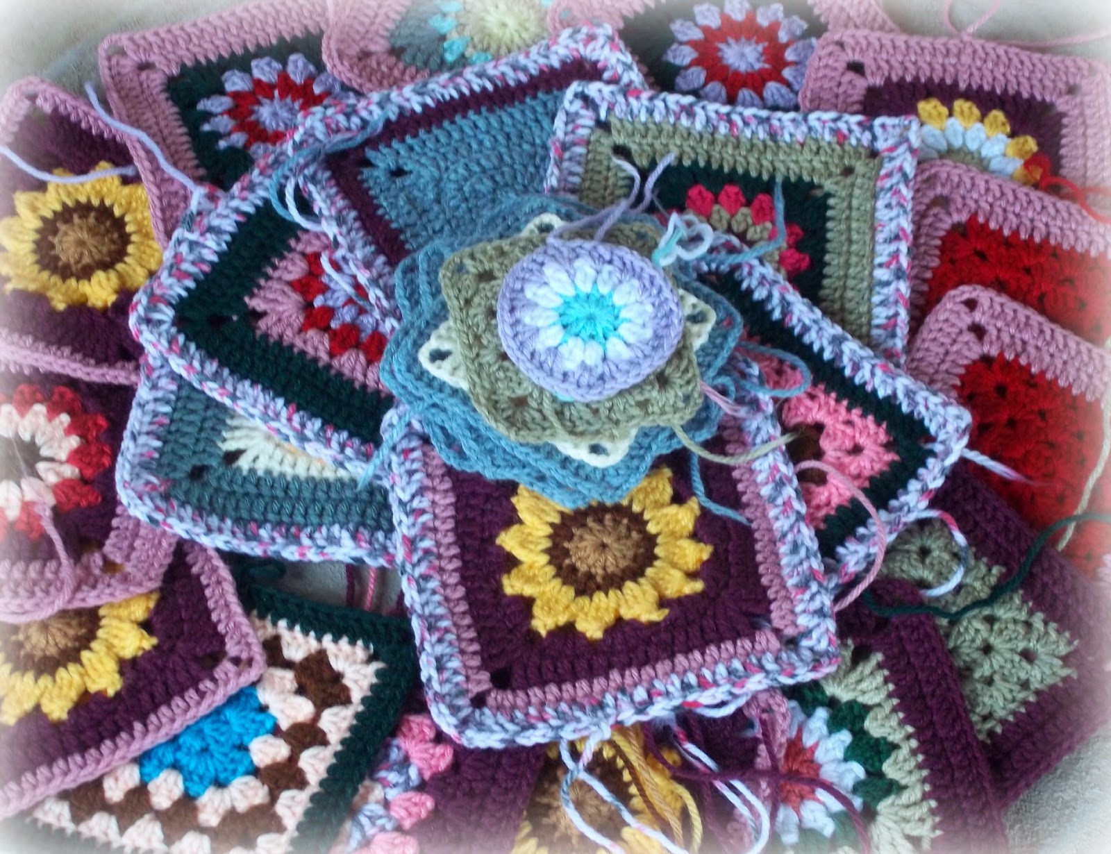 (Somebody had asked for square patterns - there are a few on my blog if you would rather follow a pattern for your squares: RAINBOWS AND DAISIES SQUARE; CIRCLES IN SQUARES; EIGHT PETAL GRANNY SQUARE;)