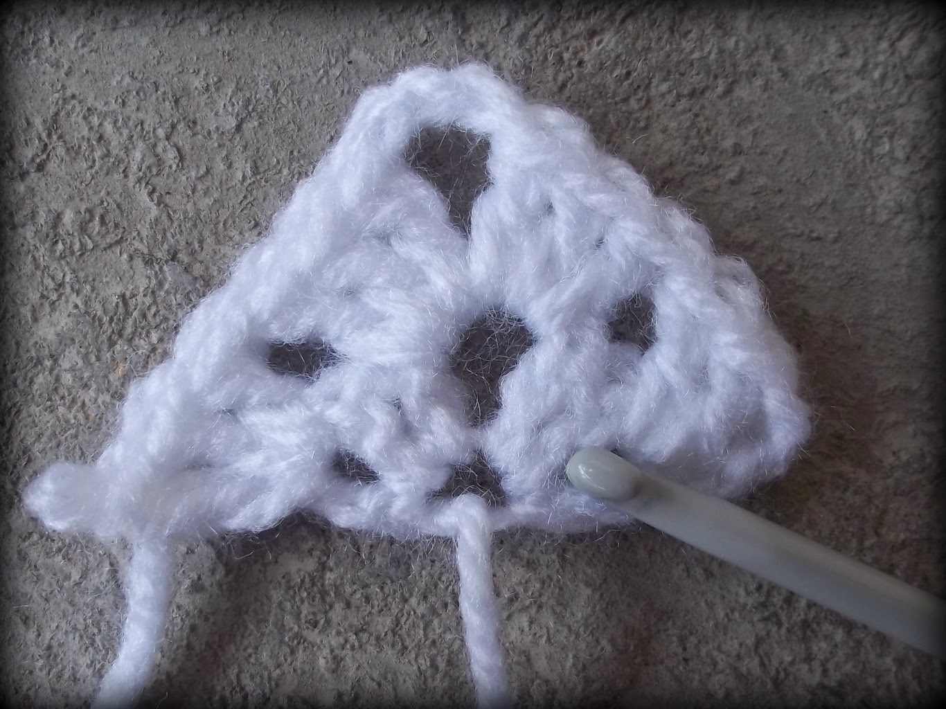 previous row; 2dc, 3ch, 2dc into 3ch sp