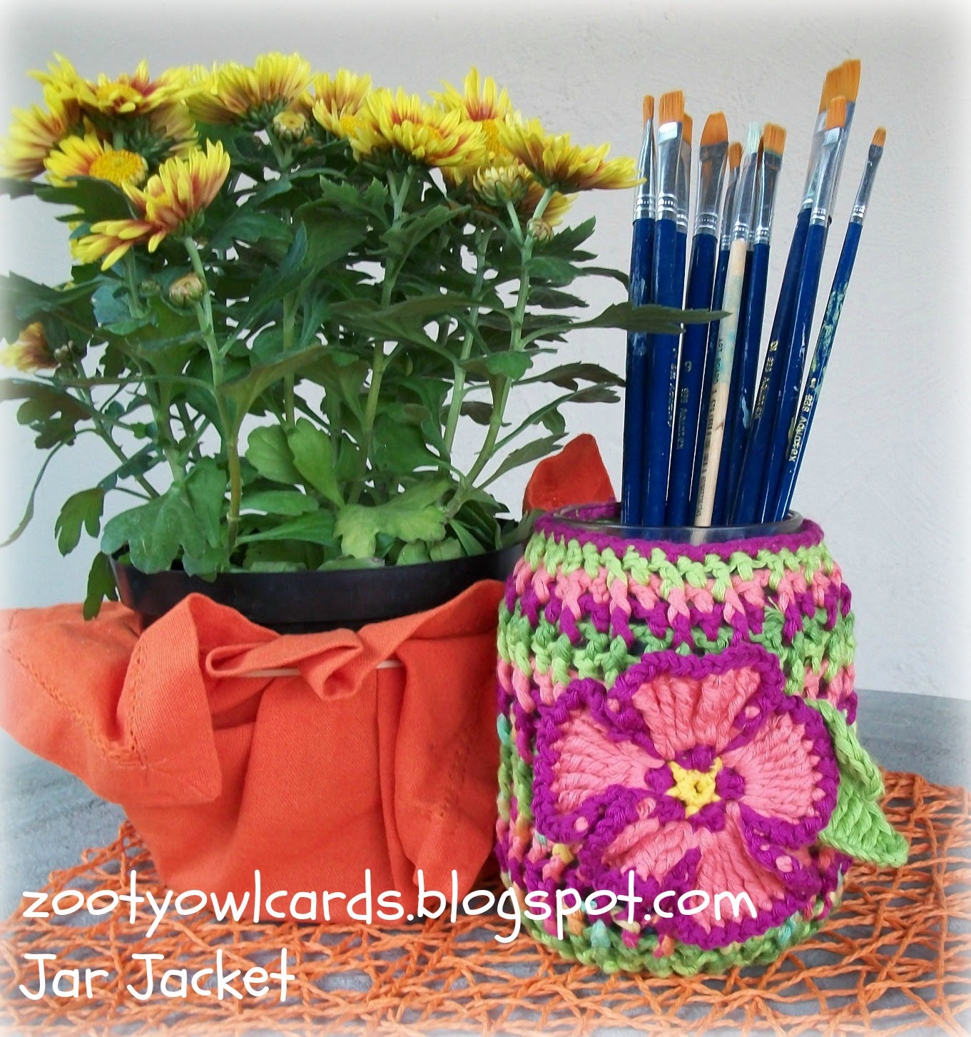 I made another two using Raeesah Cotton Soft DK and a 4.00mm hook to decorate some jar jackets I had made:
