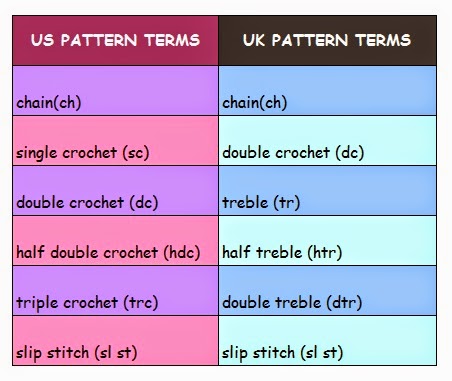 My patterns are all written in US terms. For those readers who are used to UK terms I will be including this little conversion chart in all my patterns for ease of reference.