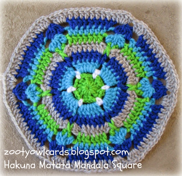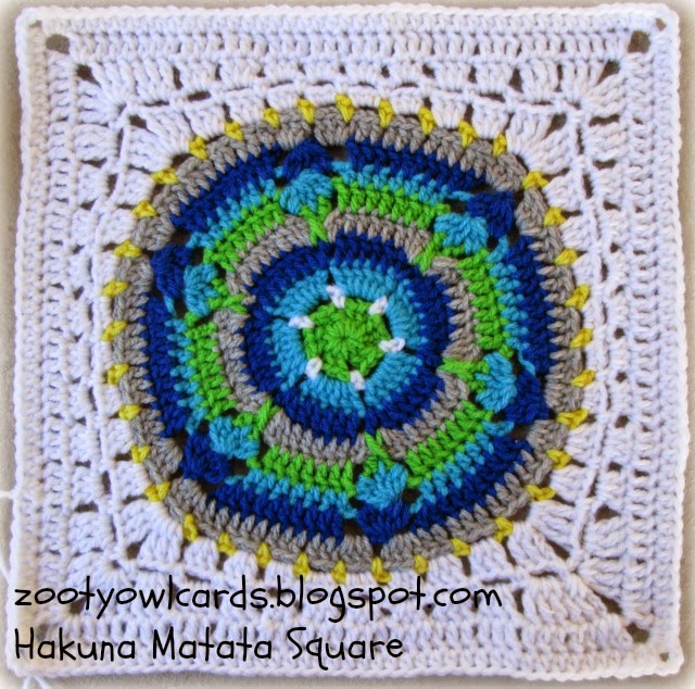 Our first square is the Hakuna Matata Mandala Square. "Hakuna Matata" is a Swahili phrase which roughly translated means "No Worries"