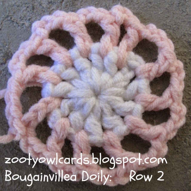 into 2nd dc on next 10dc group, 2ch; 1dc, 2ch into each of next 7dc) x