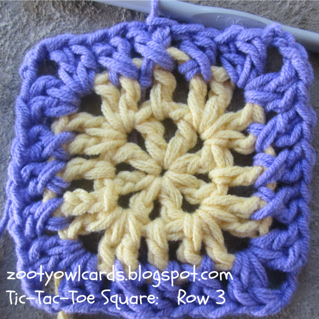 Row 3: Join yarn in top of any dc; 3ch (counts as 1dc); [1dc into each dc; (2dc, 3ch, 2dc) into corner 3ch sp] repeat until you are back at the start; sl st into 3rd ch at start to close. Break off yarn.