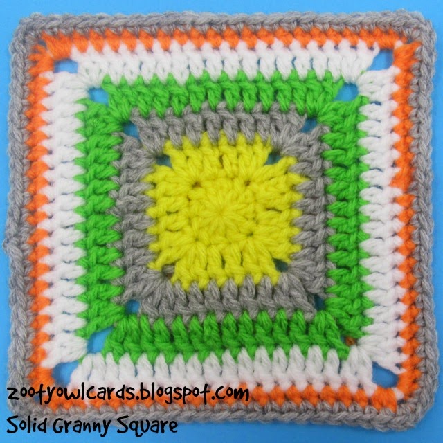 Join the Solid Granny Squares to the Sunny Flower Squares using the VISIBLE JOIN METHOD to make bigger squares (28cm x 28cm = 2 Solid Granny Squares and 2 Sunny Flower Squares).